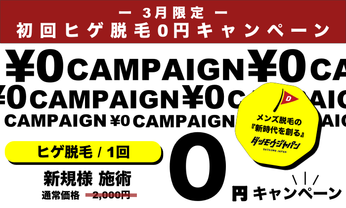 【山口下関店限定】ヒゲ脱毛 月額¥5500