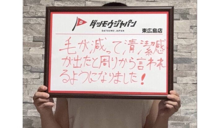 山口県から東広島へ来ました。 『体毛が気になる…』そんなお悩みを!完全予約制&リラックスできる空間で解消しませんか? お気軽にお問合せください!