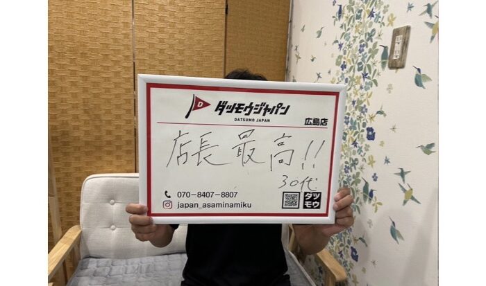広島のメンズを全力で綺麗に!山口県から広島県へやってきました。はじめの第一歩のサロンになれるように。まずは無料カウンセリングでお越しください。ダツモウジャパンの良さ・強みをしっかりとお伝えさせていただきます◎