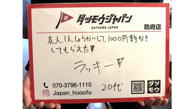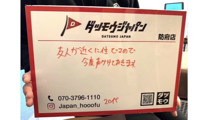 お近くのダツモウジャパンのお問い合わせフォーム、もしくは LINE追加で直接やりとり可能です。